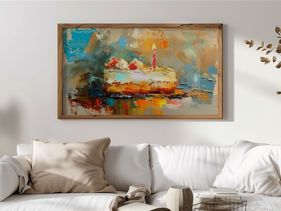 Samsung Frame TV Art: vibrant abstract birthday cake design