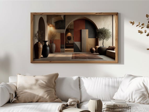 Architectural Interior Geometric TV Art, Painting Samsung Frame TV Neutral Wall Art Modern Rustic Decor Earth Tones Digital 379