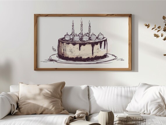 Samsung Frame TV Art: charming birthday cake illustration