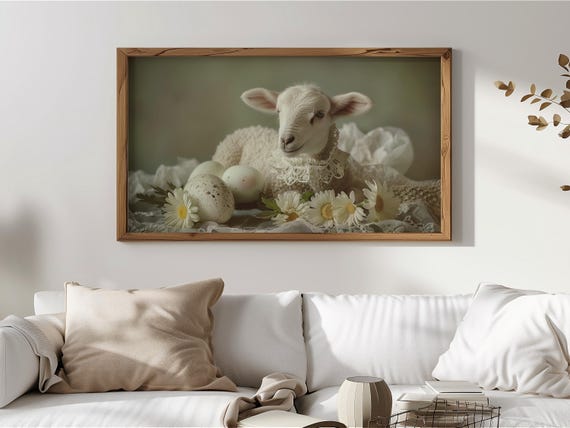Thank you so much for visiting my shop. I hope you enjoy displaying this charming baby lamb surrounded by delicate daisies and painted eggs on your Frame TV.