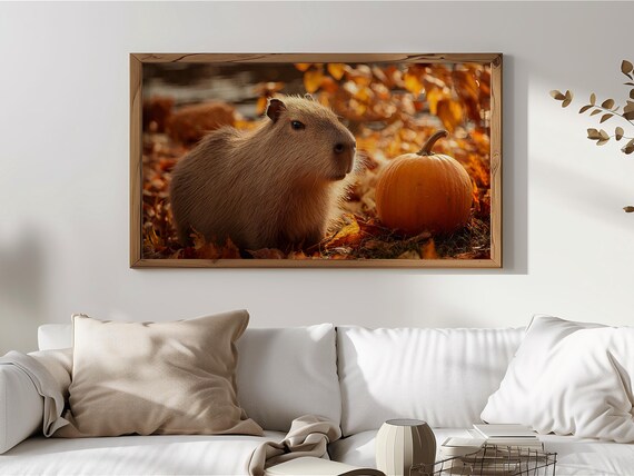 Thank you so much for visiting my shop. I hope you enjoy displaying this charming capybara surrounded by autumn leaves and pumpkins on your Frame TV.