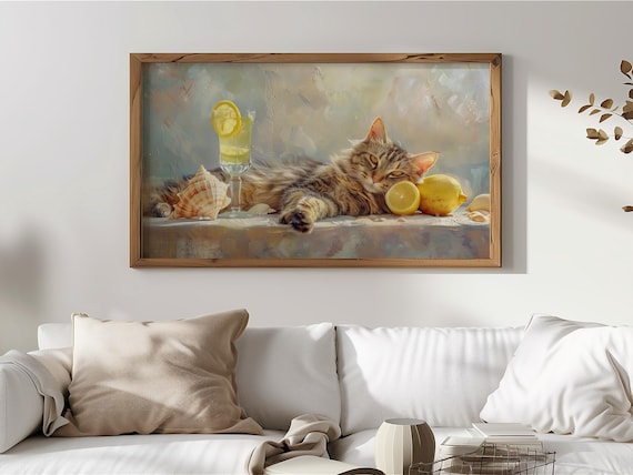 Thank you so much for visiting my shop. I hope you enjoy displaying this charming artwork featuring a vintage tabby cat enjoying a refreshing glass of lemonade on your Frame TV.