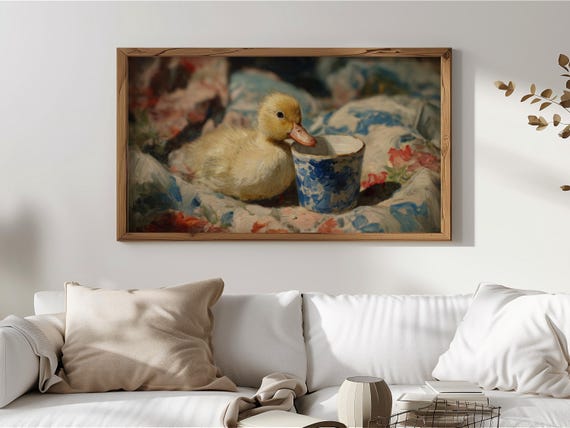 Thank you so much for visiting my shop. I hope you enjoy displaying this adorable vintage-inspired duckling in a charming teacup on your Frame TV.