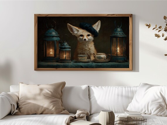 Thank you so much for visiting my shop. I hope you enjoy displaying this adorable fennec fox scene featuring a charming tea set and glowing lanterns on your Frame TV.