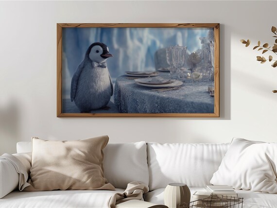 Samsung Frame TV Art: adorable penguin framed art piece that brings a touch of whimsy to your home decor