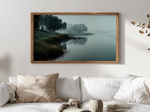 Thank you so much for visiting my shop. I hope you enjoy displaying this soothing depiction of a misty lakeshore with serene reeds reflecting on the water's surface on your Frame TV.