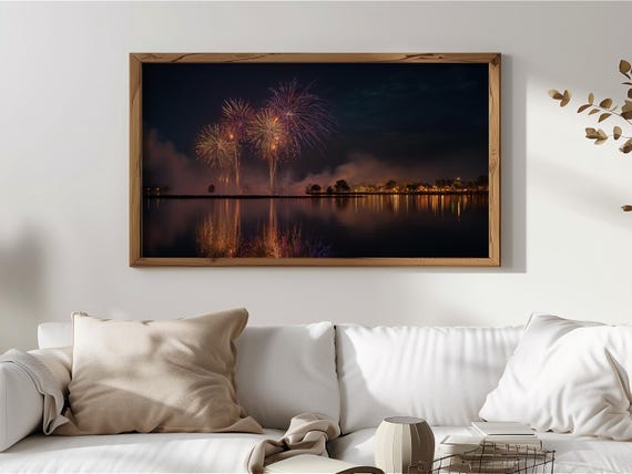 Samsung Frame TV Art: captivating display of fireworks illuminating the night sky