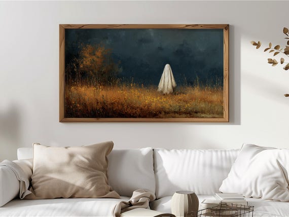 Moody Rustic Ghost Field Art for Samsung Frame TV: a hauntingly beautiful scene of wildflowers and grasses swaying gently in a ghostly field, evoking a sense of nostalgia and tranquility