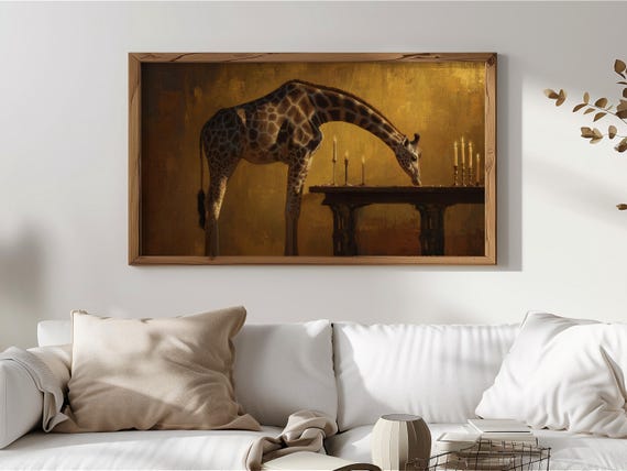 Moody Vintage Giraffe TV Art, Dark Academia Wall Decor, Surreal Animal Painting, Frame TV Art, Rustic Candlelight Art, Digital Download 186