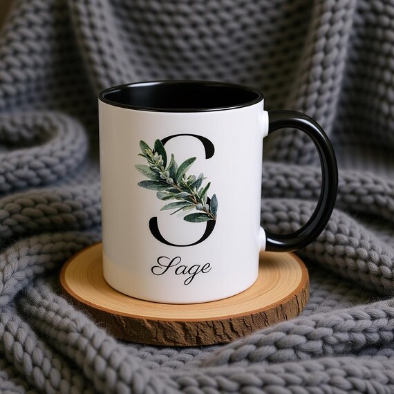 Personalized Letter S Mug | Sage Floral Initial | Coffee, Customized Gift, Tea Lover's, Mother's Day Gift, Floral Coffee Cup