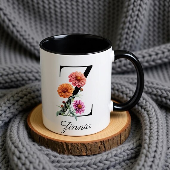 Personalized Letter Z Mug | Zinnia Floral Initial | Coffee, Customized Gift, Tea Lover's, Mother's Day Gift, Floral Coffee Cup