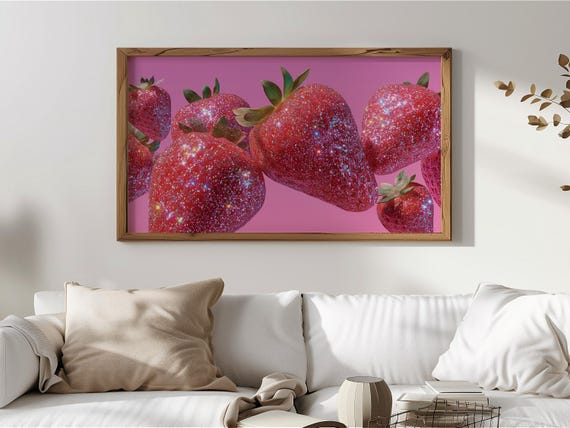 Samsung Frame TV Art: a delightful and vibrant display of retro strawberries bursting with color and charm, perfect for adding a whimsical touch to your living space.