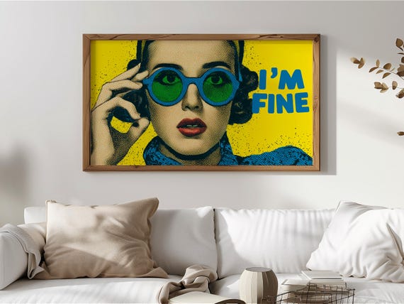 Samsung Frame TV Art: vibrant depiction of a surprised woman, capturing the essence of retro pop art