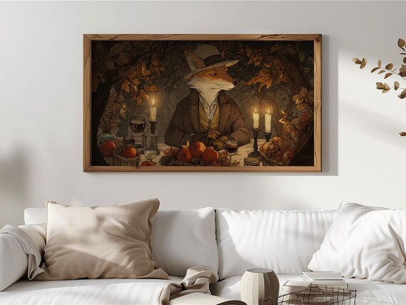 Rustic Autumn Fox Fall TV Art for Samsung Frame TV: charming fox artwork