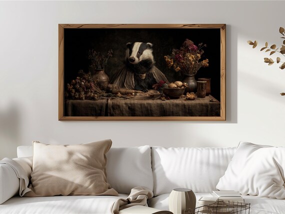 Samsung Frame TV Art: charming badger framed artwork that captures the essence of woodland life