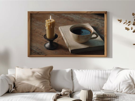Rustic Candlestick Still Life Frame TV Art, Cozy Vintage Coffee and Notebook Art, Rustic Wall Decor, Digital Download, Instant Art 293