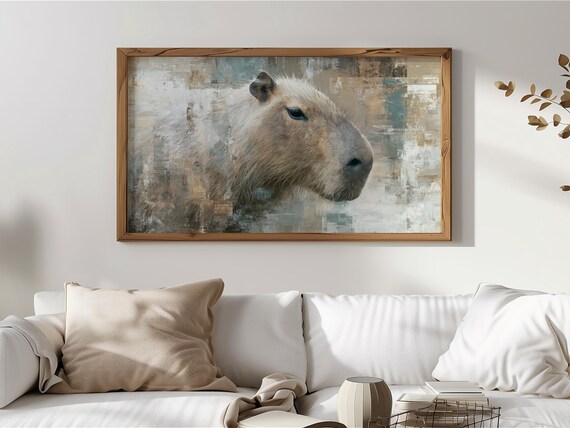 Rustic Capybara Frame TV Art, Abstract Painterly Wildlife Art, Cozy Wall Decor, Neutral Animal Art, Digital Download for Frame TV 288