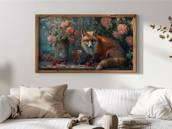 Thank you so much for visiting my shop. I hope you enjoy displaying this charming depiction of a rustic fox surrounded by blooming roses and a refreshing glass of iced tea on your Frame TV.