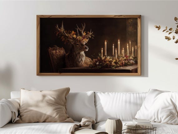Samsung Frame TV Art: candlelit stag scene that captures the essence of autumn