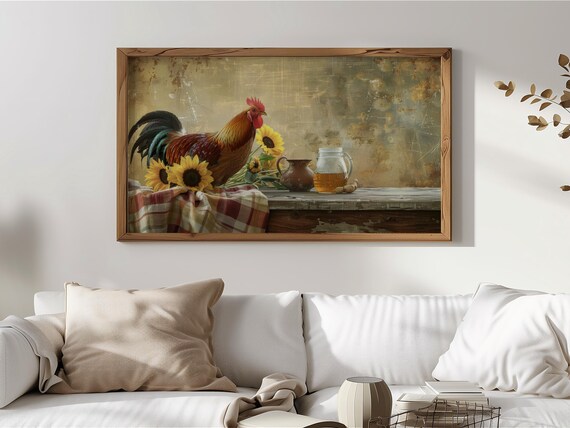 Rustic Rooster TV Art, Vintage Farmhouse Still-Life Art for Frame TV, Cozy Country Kitchen Decor, Digital Download Wall Art 228