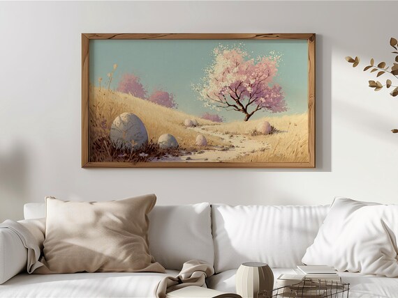 Samsung Frame TV Art: stunning spring landscape with lush greenery and blooming flowers