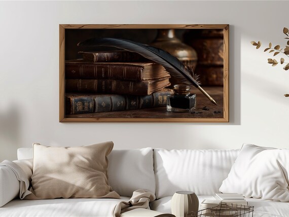 Thank you so much for visiting my shop. I hope you enjoy displaying this charming still life featuring vintage leather-bound books, an inkwell, and a quill on your Frame TV.